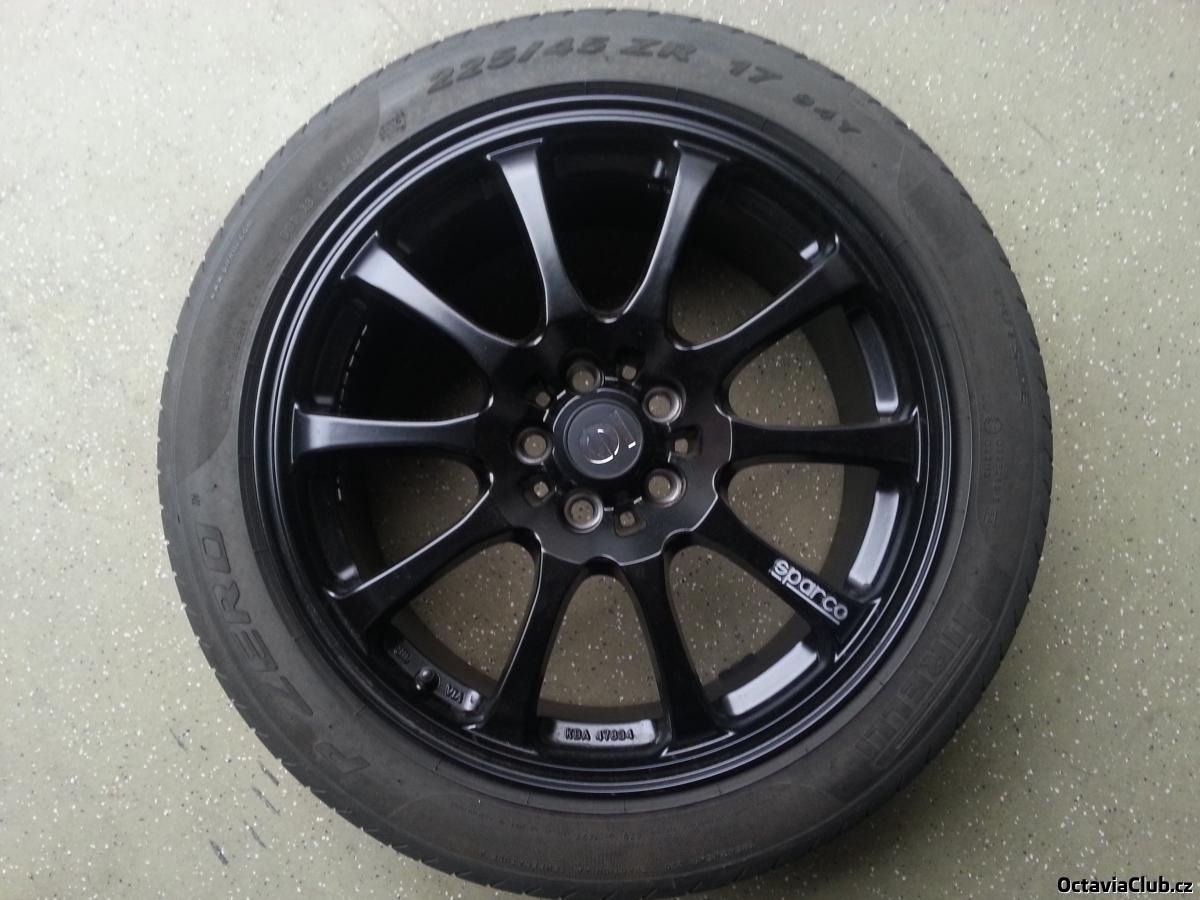Prodám sadu 4 ks Alu kol SPARCO Drift by OZ 8x17, 5x100, ET48, průměr středové díry 63,4, černý mat - v perfektním stavu bez jediného škrábance, vč. matic a středových kroužků. Obuto na letních pneu PIRELLI P Zero, 225/45, ZR 17, 94Y s hloubkou dezénu 6,5 mm. Prodává kamarád tel. 606 748 012. Prodávám z důvodu změny vozu. Pouze osobní odběr Brno nebo Uh.Hradiště. Cena za kompletní sadu 10.900,-Kč