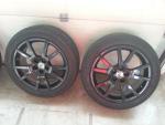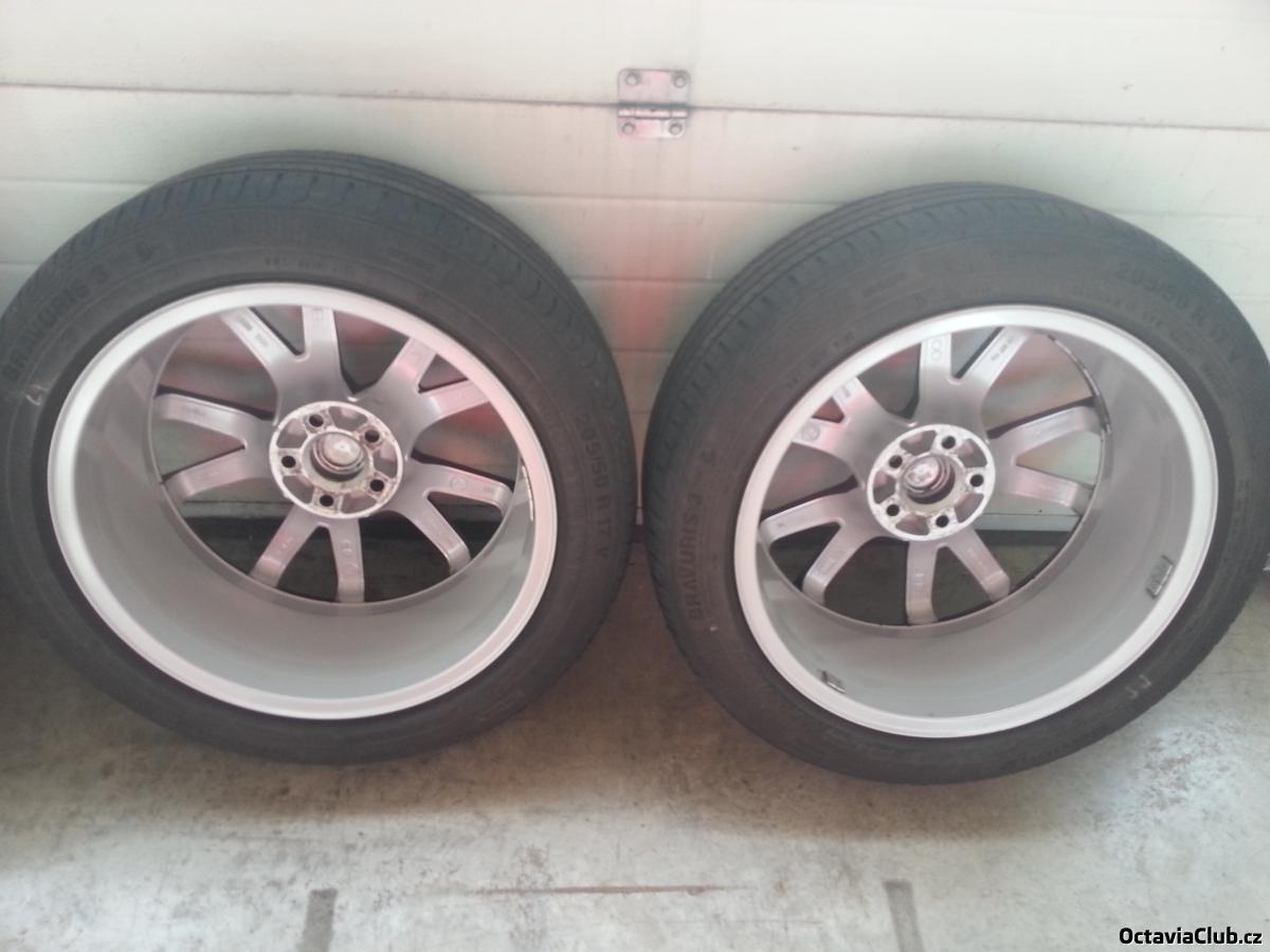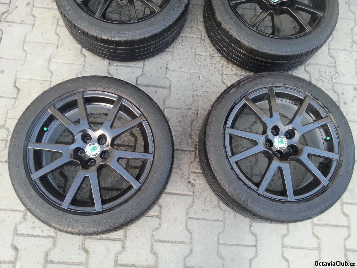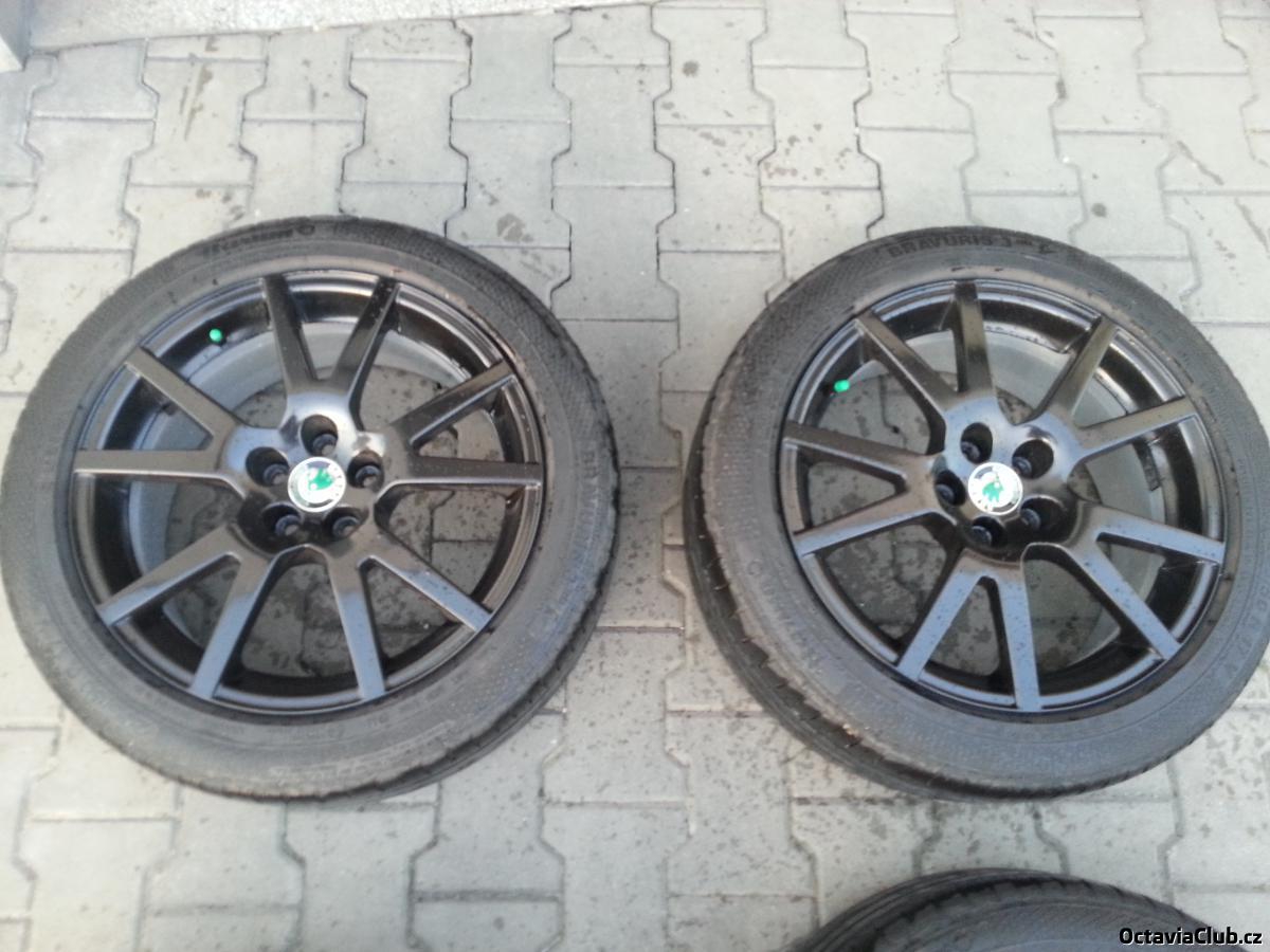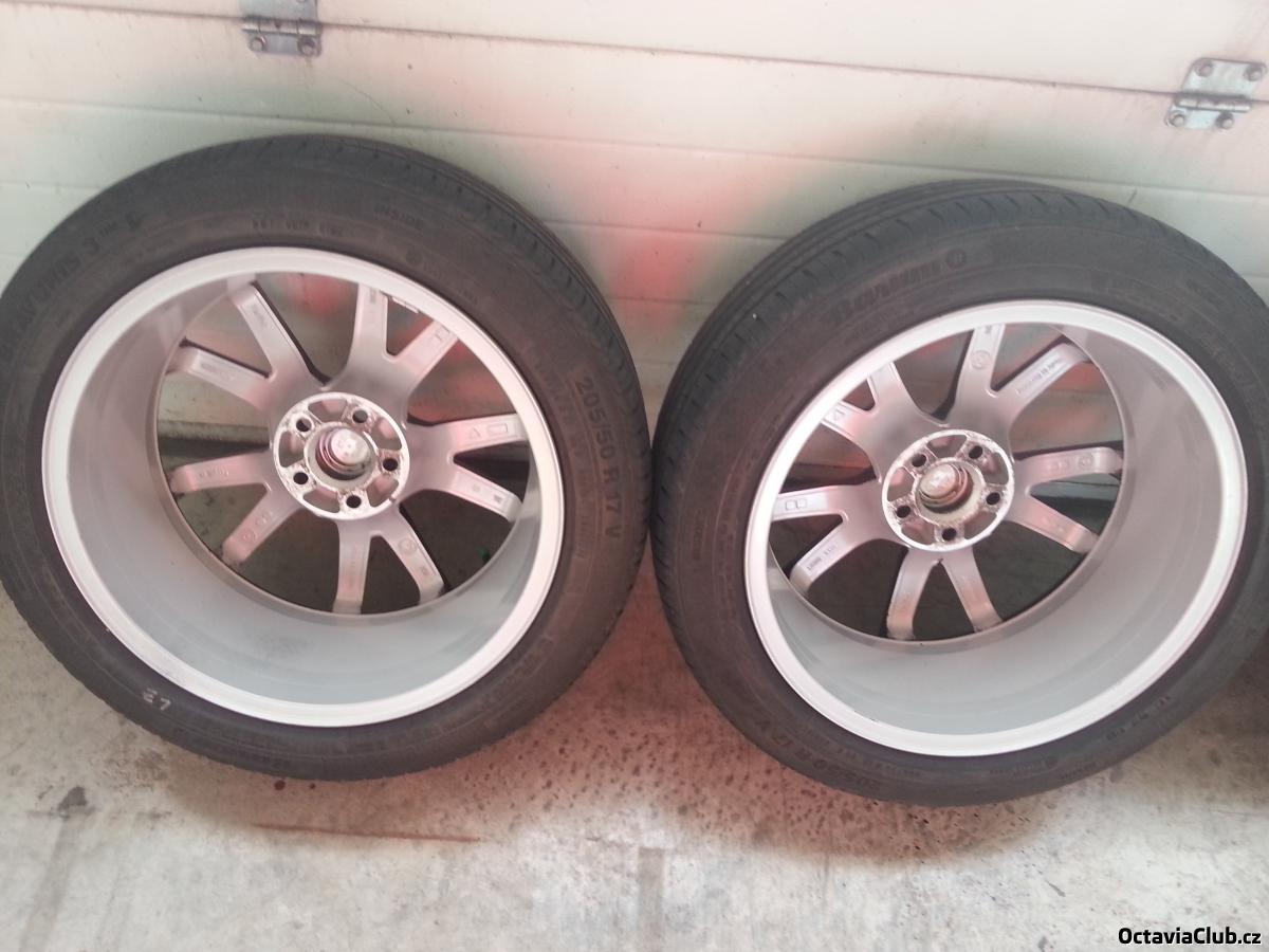Prodam alu kola Spider RS 17" 5x100 et 38 .... disky kupovane na zacatku sezony 2014 jako nove ze skoda auto - pridam kopii dokladu o koupi ... kola top stav pouze na jednom je oderka cca 4 cm dlouha viz foto, kolo nehaze. Na kolech je nanesen cerny foliatec - lze sundat a budou opet stribrna. Pneu jsou Barum 3hm 205 50 17 do 0714 vzorek 4,5-5 mm. Cena za sadu kol vcetne poklicek a pneu je 12 tis
