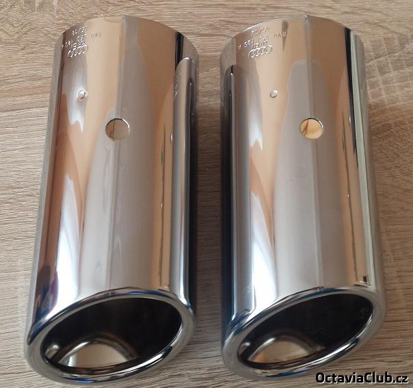 Zdravím vespolek, nabízím k prodeji originální (č. dílu 8V0 253 825 A), nové a nikdy nepoužité 2ks kulatých chromových koncovek z AUDI viz přiložené foto. Délka koncovek je 155 mm, průměr 75mm. Jedná se o koncovky ze zadního pohledu na auto na levou stranu. 1 kus 600,-, oba kusy dohromady 1100,- včetně pošty. Osobní odběr možný v Praze. Kontakt přes SZ nebo via email: postman007.pd@gmail.com