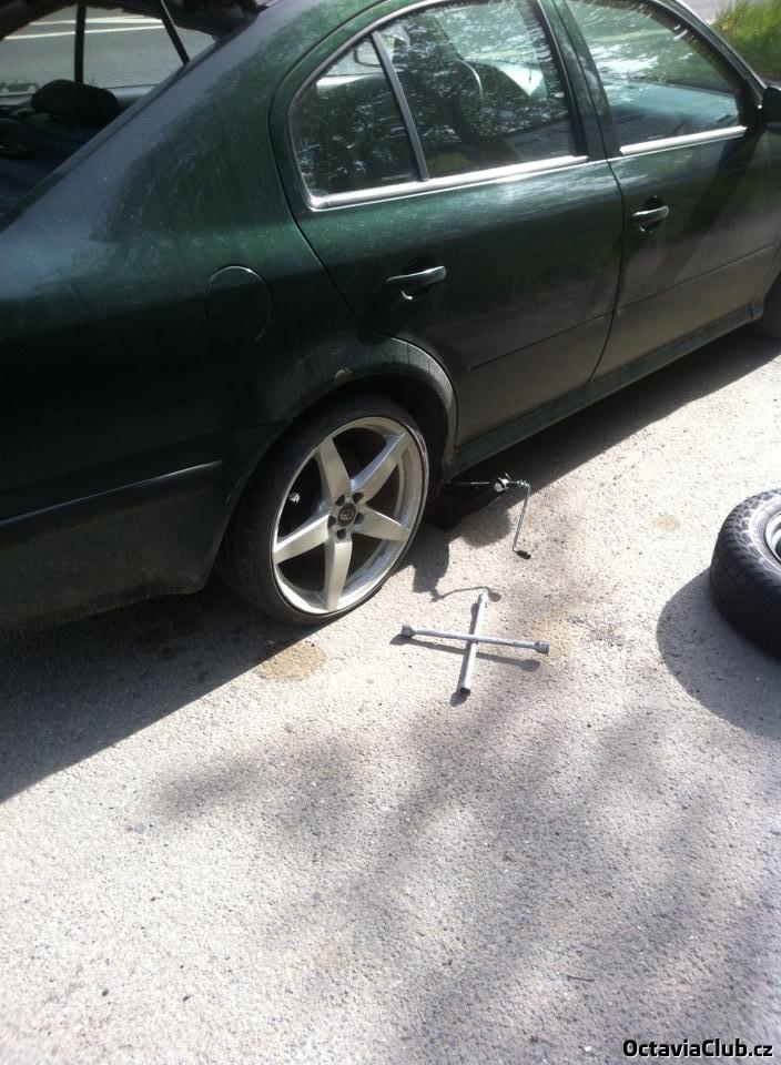 Pár těch foto co se nasbíralo Podložky pod kola 1cm...Nové ledky do světel...špionážní fotka když sem chemicky čistil lak na Supíkovi od "přitelkyně" a sku*veny defekt kvuli kterému sem musel koupit 2 nové gumy Ty 215/35 jsou prostě radost