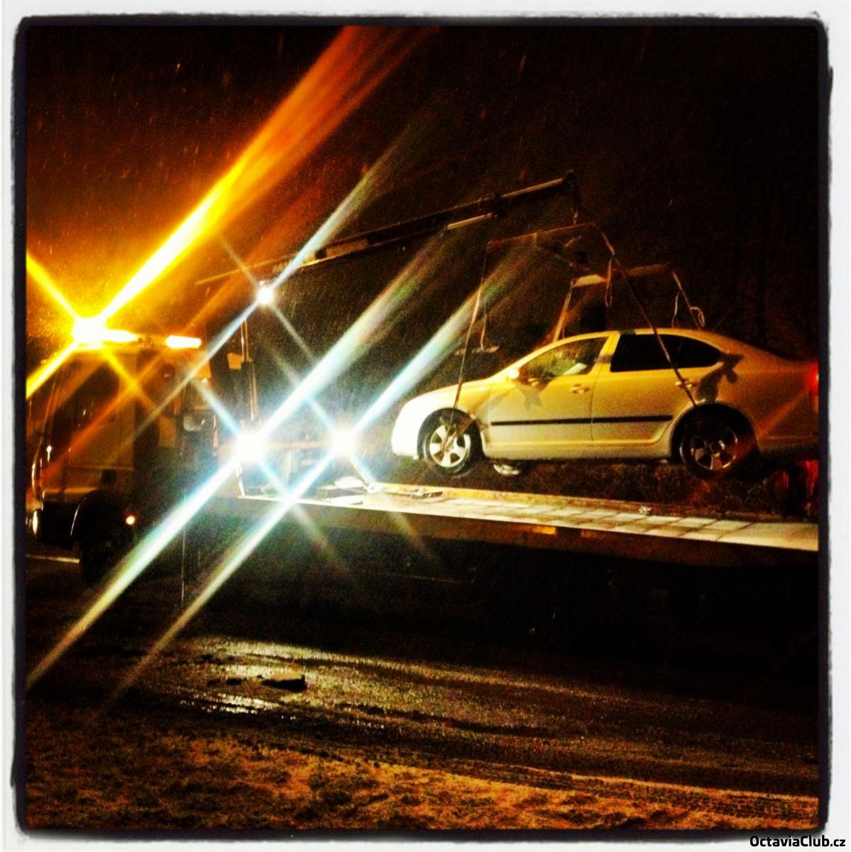 Následovaly však horší chvíle, ikdyž ty jsem nakonec taky použil k posunu vpřed. Na začátku roku 2013 se mi stala nehoda. Pán jedoucí proti mně se vyhýbal mohutné díře na kraji vozovky a vjel do protisměru. Mně nezbylo nic jiného, než strhnout volant a jako na potvoru zrovna v tom místě si někdo jistě velice chytrý řekl, že bude hrozně fajn, když se hned vedle silnice dá pár urostlých patníků, aby tam nikdo nemohl parkovat a tak se stalo, že jsem ten největší z nich trefil. Nejdříve jsem vylezl, kouknul na proražené kolo, prohodil pár nadávek a vydal jsem se měnit kolo. Když jsem však obcházel auto, všiml jsem si, že levé kolo je zcela rovně a pravé viditelně vytočené vlevo. Následně jsem zjistil, že jsem nejen prorazil kolo, ale i ohnul disk, rameno, těhlici, zrušil tlumič a odřel můj krásnej novej nárazník a práh. Naštěstí se k tomu pán postavil čelem, zastavil, sepsali jsme protokol a každý jsme si šli po svých. Teda, popravdě, on odjel ve svém neponičeném autě, já "odešel po svých" a mojí okinu odvezli na odtahovce. Jak jsem již výše psal, i to, že moje auto muselo opět navštívit servis jsem použil k nějakému posunu vpřed. Nechal jsem opravit pár kosmetických vad na laku a navíc jsem si koupil lakovací lišty a nechal si je nastříkat do barvy vozu.