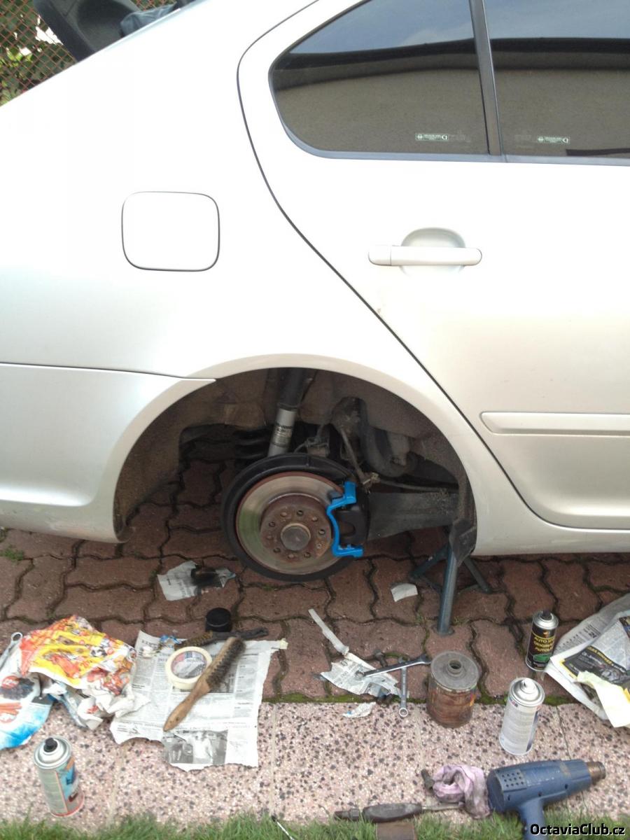 Ještě než se dostalo na další úpravy, mě okina dovezla na dovču do Francie a Europaparku v Německu. Po výletu přišel čas na pravidelný servis a jelikož nejsem z těch kteří by servis přejížděli o několik tisíc, nezbylo nic, než se do něj pustit Pak už přišly na řadu věci z řad jízdních vlastností a výkonu. Jelikož nejsem ten typ co by si stáhl kradený software a sám si upravoval palivovou mapu auta, obrátil jsem se na společnost ABC tuning, kteří provedli mapování mého auta a výkon se tak zvedl z původních 77kw na 102kw a krouťák stoupl o nějakých 70 nm na cca 340 nm. Ale ne vše je jen o výkonu. Hodně mi vadilo, že v zatáčkách to prostě není ono a navíc, jak jste si mohli všimnout na předchozích fotkách, byla to docela "koza" a tak se muselo rázně zakročit. Nechtěl jsem auto úplně potopit na zem, ale chtělo to něco sportovnějšího a tak jsem sáhl po podvozku značky Eibach - snížení 30/30. Nejsou to jen pružiny, ale opravdu celý set včetně tlumičů. Díky mým kamarádům, kteří mají s aplikací nových podvozků bohaté zkušenosti, se to nakonec vše povedlo a auto si pěkně sedlo :) Musím uznat, že mít a nemít sportovní podvozek v zatáčkách, je opravdu nebe a dudy. Podvozek se velice osvědčil. Po namontování podvozku jsem se rozhodl trochu vylepšit stav brzdových štítů, těhlic a brzdičů a tak jsme jim dali nový kabátek. Těhlice jsme udělali do barvy kol, štíty a brzdiče šli do matné černé barvy. P.S. Na těch fotkách nejsem já, tak hezkej kluk zase nejsem ;) Je to můj velice dobrý kamarád Luky, který mi pomáhal vesměs s každou úpravou.