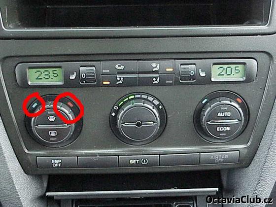 Čaute. Co vše má svítit v noci na climatronicu? Jde mi přesně o to že celý svítí to je ok ale jak jsou kulaté ovladače teploty tak nad nima mi svítí jen modrá. Ale je tam i červená - ta nemá svítit? Nesvítí mi totiž ani na jedné straně.