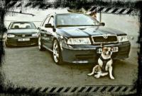 Exteriér: přední Rs nárazník, lišty v barvě vozu, ze dveří sundány. Fólie ale kola R18 origo xenonove lampy, podvozek Eibach