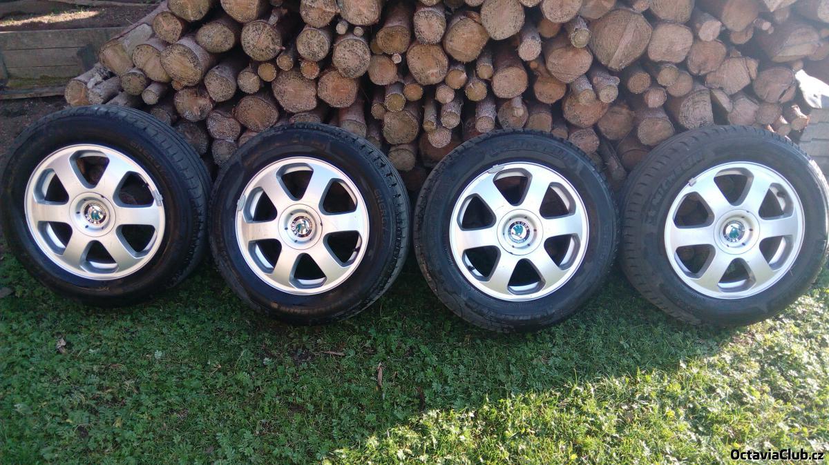 Prodám originál litá kola na škodu octávia 1, jsou to 6,5J-ET 43 R15 pěkné neodřené nezoxidovatělé, je na nich pneu michelin energy 205/60 R15 se vzorkem 5mm. Jen nasadit a jezdit. Může se na ně nasadit i pneu 195/65 R15. Cena dohodou.