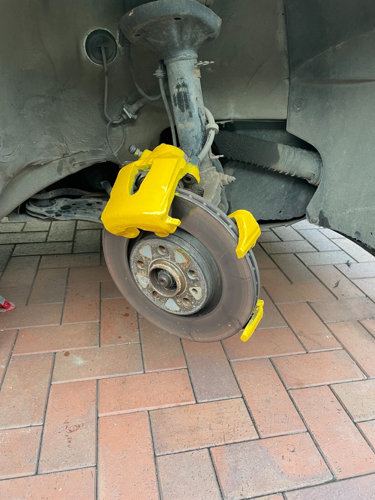 Maličkost před přezutím ☺️ Pozítří mě celá výměna zadního dílu výfuku a dneska při barvení třmenu jsem zjistil ze je KO zadní prava pružina. když budou teď Velikonoce a nějaký čas navíc, tak rovnou hodím nové. Nejspíš Eibach Pro-Kit.