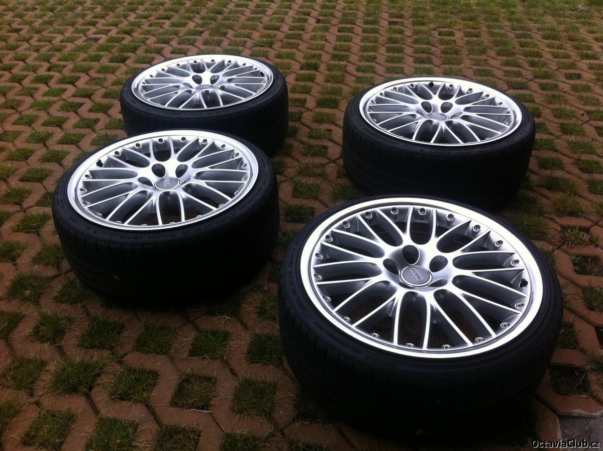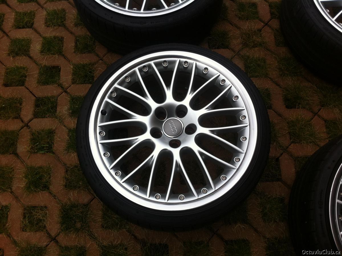 Prodám ORIGINÁLNÍ kovaná kola z Audi A6, 2 dílná, výrobce BBS, s leštěným límcem, včetně kvalitních pneumatik Falken 453 - 215/35 R19, žádný Nankang apod... Stav disků odpovídá cca 6 letému stáří, sem tam škrábanec. Kola mají kvalitně dovařené límce od předchozího majitele. U mě sloužily 4 roky bez problému. Pneu mají najeto cca 30 tis km, zbývá 5-6mm vzorku, 2 jsou více sjeté na vnitřní straně viz foto Rozměry 8,5x19" ET48 Pasují na většinu koncernových vozů Škoda, Audi, VW, Seat apod. Cena 27 000 Kč k jednání upřednostňuju osobní odběr Praha nebo Mladá Boleslav telefon: 608737104