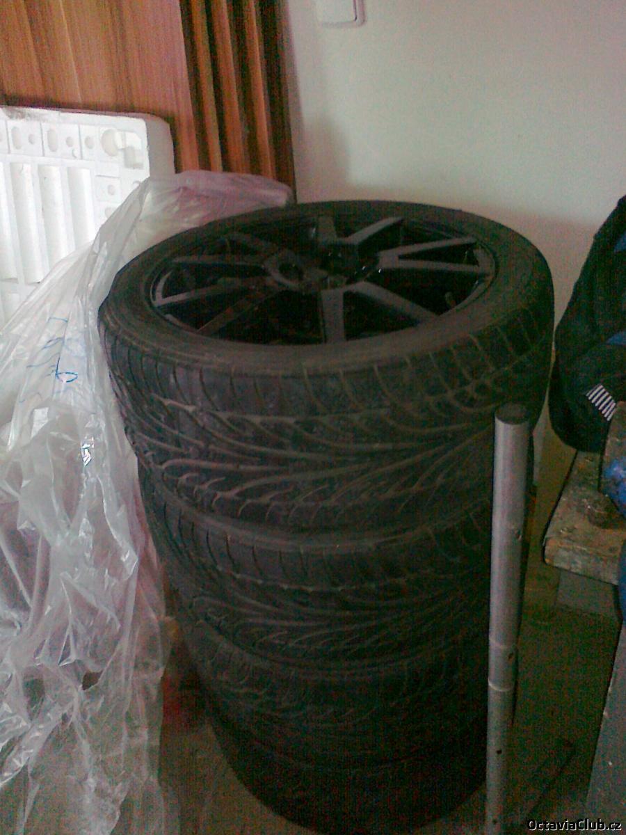 3. Prodám spidery černé s pneu Dunlop Sport 9000 v rozměru 225/45/17, vzorek cca 3-4 mm. Na jednom je škrábanec (viz foto). Cena 12 000. Praha a okolí. mail: bagrovina@centrum.cz škrábanec
