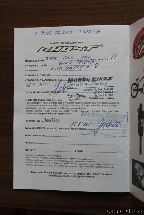 1. Nabízím k prodeji minimálně jeté (do 400Km) silniční kolo Ghost Bikes Race Actinum 5000, velikost 58cm (moje výška 187cm), modelový rok 2011 - stav nového kola (jen na horní rámové trubce škrábanec od skladování :-( ), veškeré komponenty originální, nic neměněno (nebylo třeba). Kolo je koupeno 12.9.2011, jako doplňkové k MTB, avšak nevyužito. Kromě zákonem dané dvouleté záruky běží záruka na samotný rám do 12.9.2016 (kolo zaregistrováno na http://www.ghost-bikes.cz). Kolo bylo na celkem osmi vyjížďkách. 16.8.2012 bylo na první garanční prohlídce, kde bylo seřízeno a od té doby stojí. Kolo je osazeno kompletní sadou Shimano 105, vedení bovdenů uvnitř horní rámové trubky, velmi rychlá kola Easton se zvýšeným ráfkem. Na kole je instalován cyklocomputer BlackBurn Delphi 4.0 se snímačem kadence a lehký košík na bidon Specialized v barvě rámu kola, ke kolu dvě náhradní duše Michelin. V případě zájmu na kole nechám i silniční SPD pedály LOOK (pořízené již jeté - proto je na nich znát jisté opotřebení). Dál nabízím silniční tretry velikosti 44 a s kufry na pedály co jsou na kole. Specifikace kola: Rám: Race Actinum DB AFT Vidlice: CG Carbon Řazení: Shimano 105 Přesmykač: Shimano 105 Přehazovačka: Shimano 105 Kazeta: Shimano 105 11-28 zubů Kliky: Shimano 105 Compact 50-34 zubů Hlavové složení: Ritchey Představec: FSA 190 Laser 31.8mm Řidítka: FSA Road Velo Compact 31.8mm Brzda přední: Shimano 105 Brzda zadní: Shimano 105 Brzdové páky: Shimano 105 Sedlovka: FSA SL 280 31.6mm Sedlo: GHOST VL 1326 Nába přední: Easton Aero Wheelset Nába zadní: Easton Aero Wheelset Ráfky: Easton Aero Wheelset Dráty: Easton Aero Wheelset Pláště: Schwalbe Durano PC: 32 999,- Kč. Kolo nechám za 25 00021 000,- Kč - dohoda možná. Tretry současně s kolem za 1000,- Kč, samostatně za 1500,-Kč. V případě zájmu pošlu více fotek. Možná osobní prohlídka a projetí v obci Bošovice - okres Vyškov. Kontakt: shwihi@email.cz nebo 602 706 693.