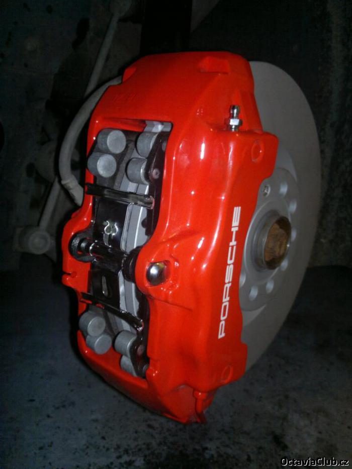 Brzdový válec s posilovačem chce sehnat aspon z RSa. Vetší má jen TTS/RS3 co pasuje. Pro kotouč cupra/S3/sII 345x30 se musí jen trochu upilovat díry v brzdiči, aby víc zalezl ke středu a nedělala se v destičce drážka. Nebo kotouče z merglu 350x32, kde stačí jen udělat 1mm středící kroužek, protože merc má větší středovku. Jinak pohoda. Jo abych nezapomněl je nutné mít šroubované těhlice z RSa nebo tam kde jsou 288mm bzrdy (2.0TDI). Jinak se nic upravovat nemusí. OII má roztěč na těhlici 145mm stejně jako ten Cayenne/Q7. Pozor na to, že 6ti písty jsou ve dvou velikostech 17ZR/L a 18ZR/L, pro tento set-up to musí být ty větší a to 18ZR/L.