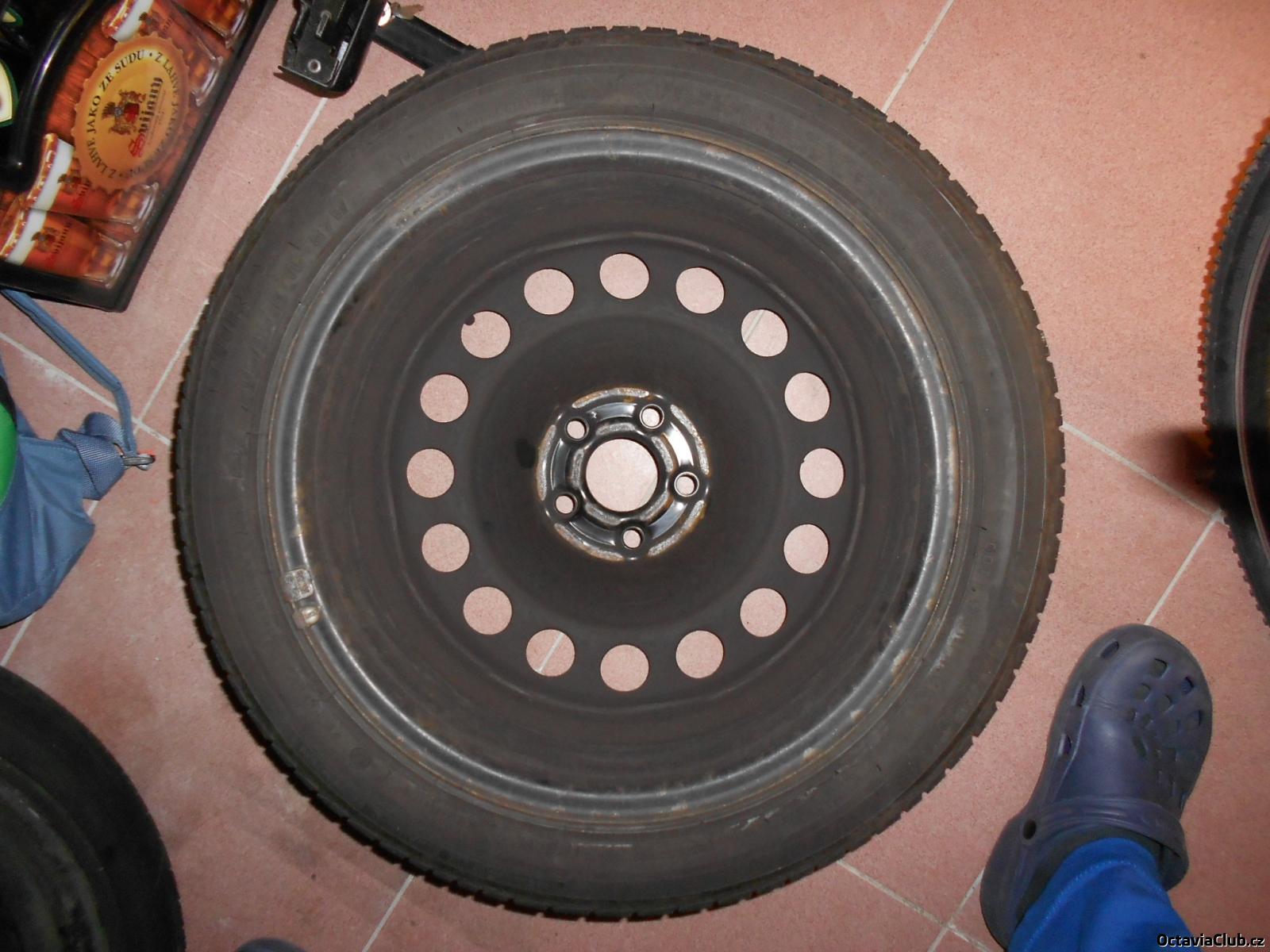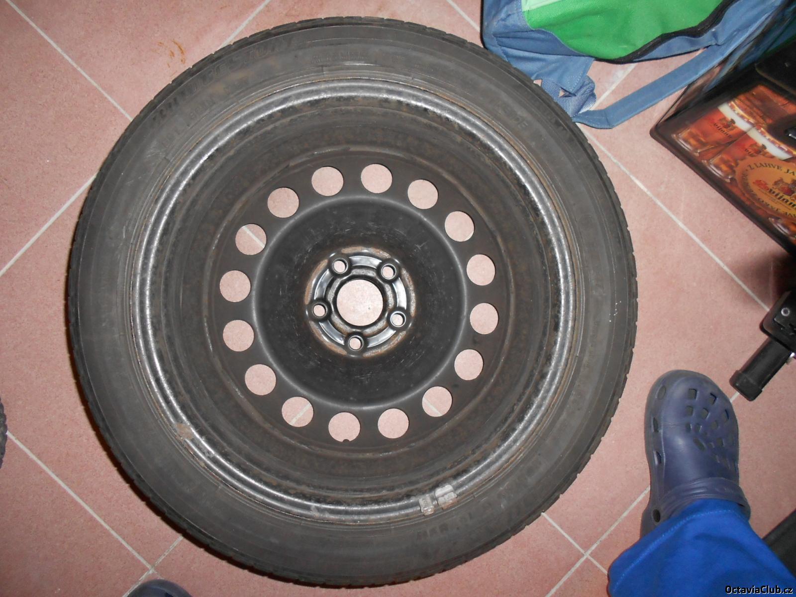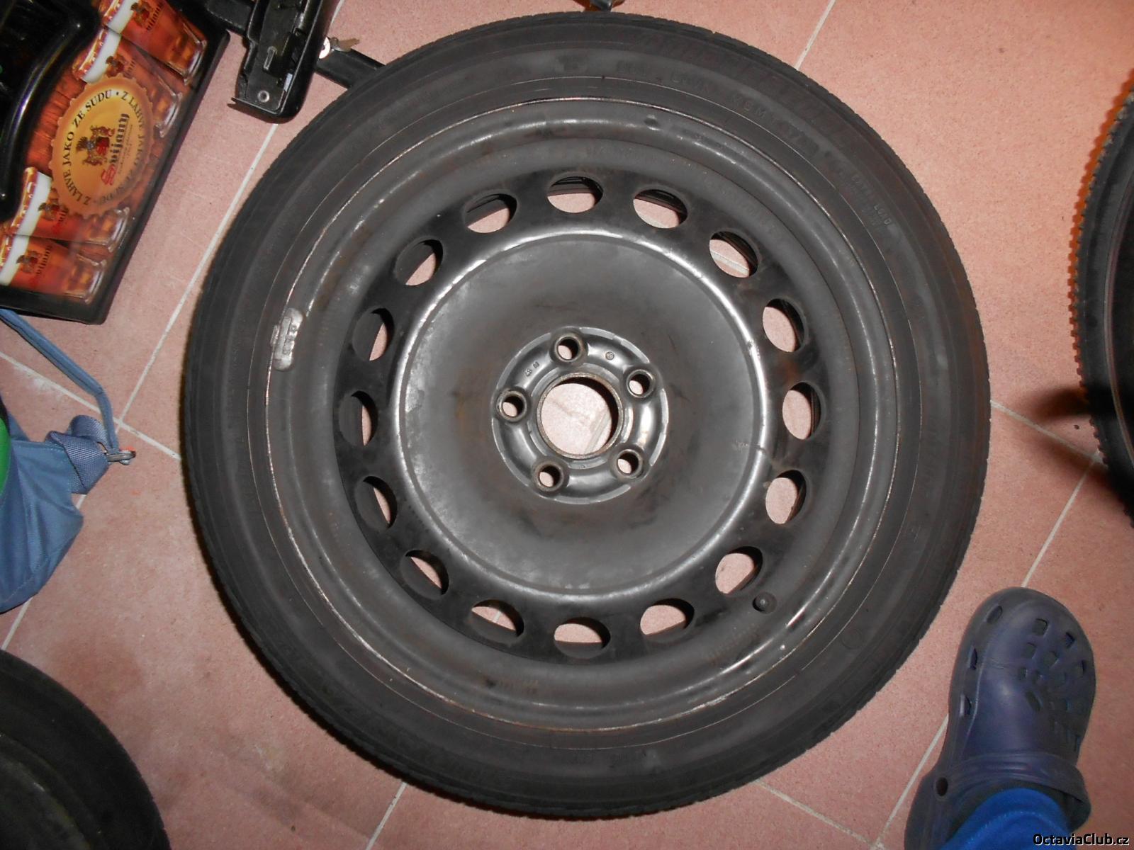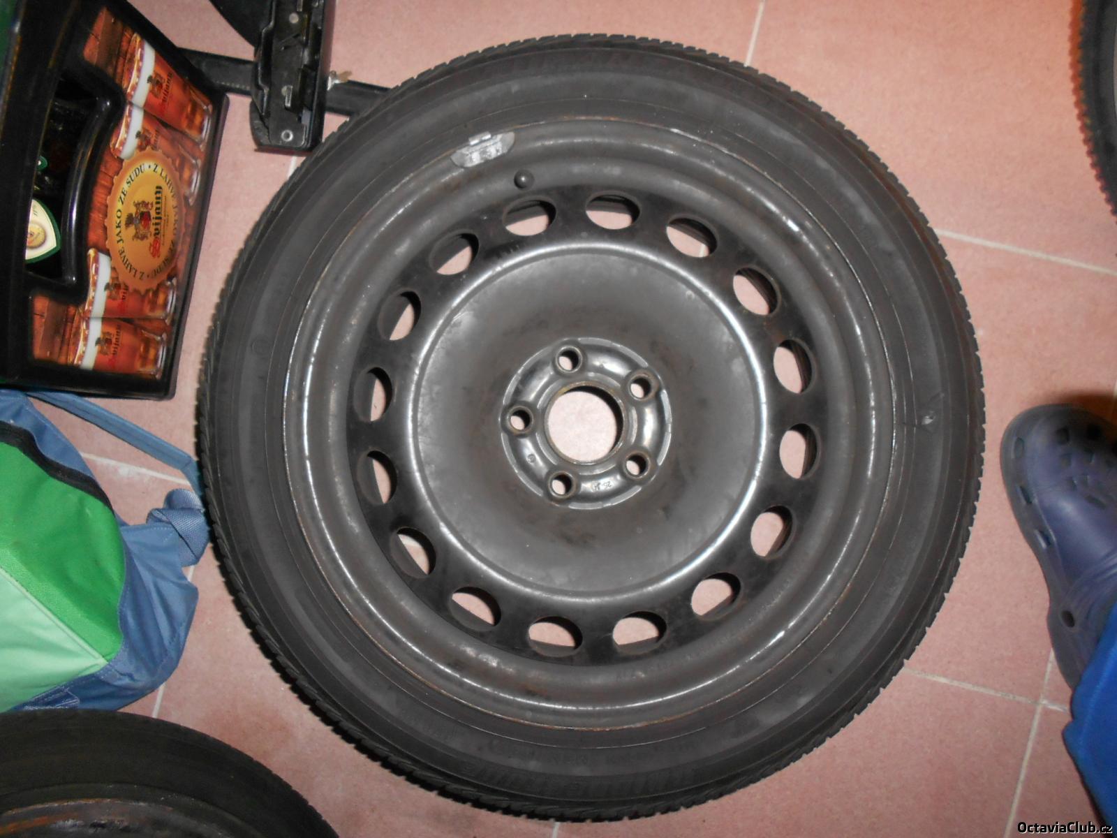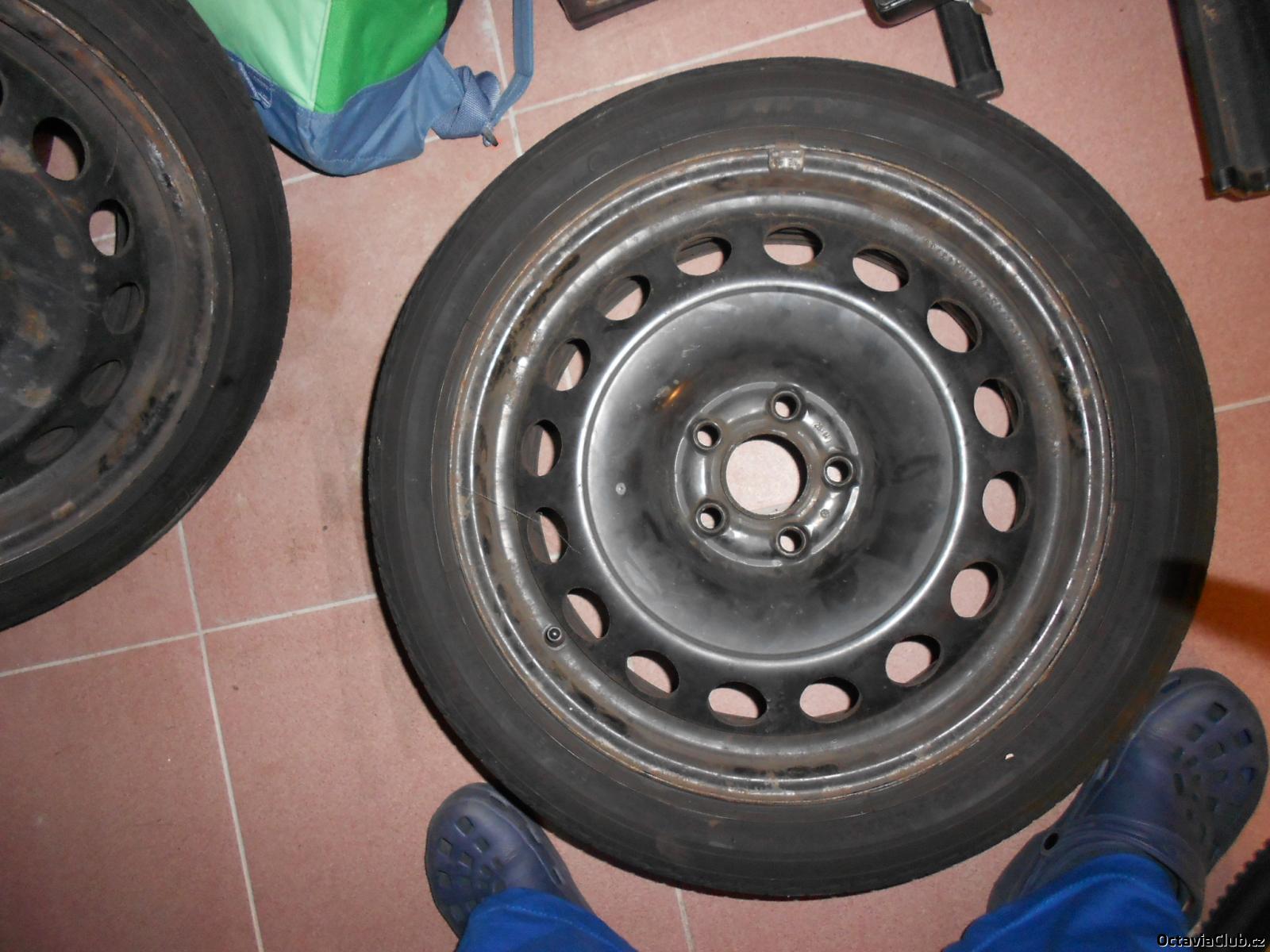 Prodám 4 kusy plechových disků 5x100 6.5Jx16 na Fabii I a II, Octavii I a Roomstera včetně nejpěknějších originálních 16" poklic (2 ks s mírnými oděrkami). Na discích jsou letní pneu na dojetí Bridgestone 205/45 R16 (jednu sezónu ještě vydrží).