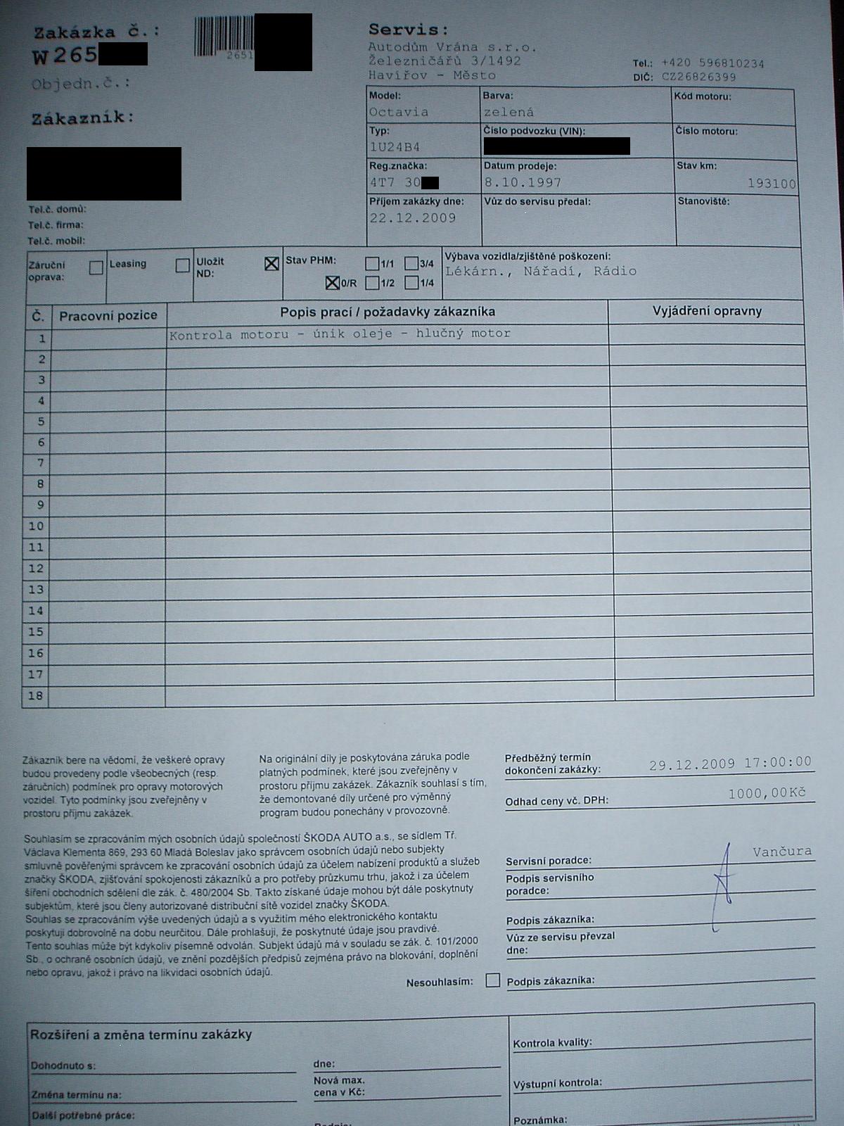 RiderPaul Odesláno Prosinec 22, 2009 Sdílet Odesláno Prosinec 22, 2009 Tak kamarádí je to tu =) Octavia šla do pelíšku na Servis Zde servisní protokol: 0 Citovat Odkaz ke komentáři