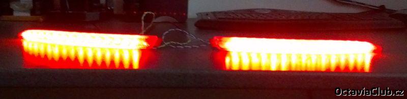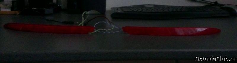 Svietilo to veľmi pekne ani nie moc silno,ani moc slabo...cez leto to hádam skúsiť dokončiť,uvidím ako mi bude vychádzať čas.Pásik som dával s bielymi LEDkami-odrazku presvietili pekne na červeno(keby som dal pásik s červenými ledkami,tak by to moc kričalo oproti zadným žiarovkovým svetlám,celkovo tam je 24 LEDiek (25cm),presne to vychádza od jedného okraja k druhému(FL nárazník),jediné,čo som musel rezať,tak to bol plast pod odrazkou :)