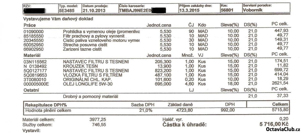 BTW. Servis Shade proběhl, olej v Haldex se vyměnil podle plánu při 60. bohužel celkovej seznam jsem nedostla ani po 3pokusech....Auto se mlží...no to je teď takové počasí pane. Žere olej jo pane norma je 1l na 5000...to jste na tom ještě dobře..No ale jedno příjemné překvapení - plastovej kryt spodku auta na spolujezdcově straně stojí pouhých 750 bez DPH....čekal jsme větší palbu:)