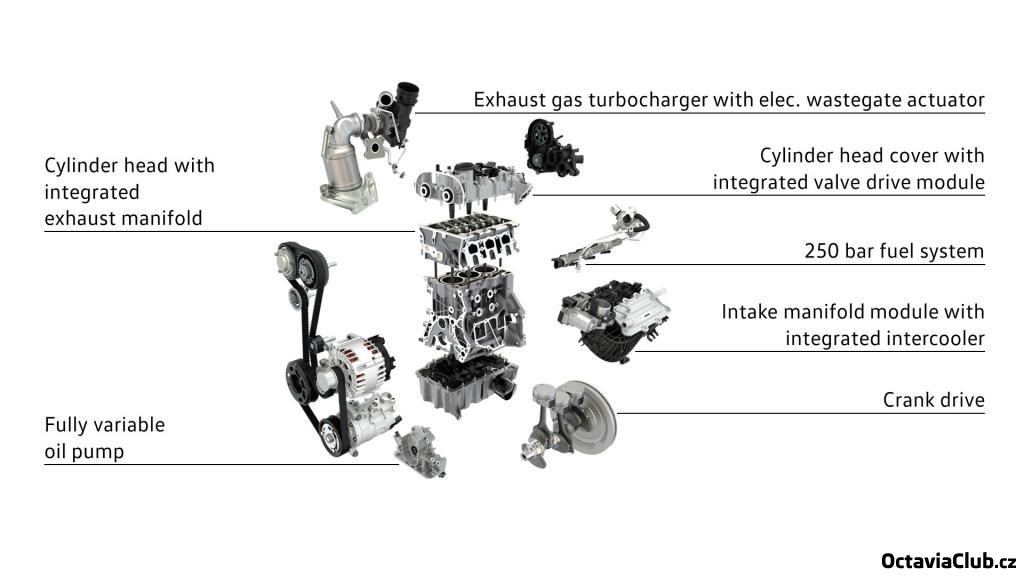 Právě jsem se vrátil z malého testu nové OIII 1.0 TSI 85 kW 200 Nm s najetými necelými 3000 km. Po nastartování studeného tříválce se ozve dost hlasitý zvuk, jako kdyby pod kapotou byl diesel, taktéž jsou cítit vibrace (hlavně v sedačce a již méně na volantu). To se opravdu příliš nepovedlo. A když člověk otevře kapotu, uvidí klepající se motůrek, to snad ani ten tříválec TDI tak nevibruje. Po rozjezdu se běh motoru uklidní, to ovšem pouze v případě, že řidič motor nezačne vytáčet, pak se totiž ozve ukrutný řev rozzuřeného oturbeného vysavače. Nejvíc je to slyšet na jedničku, vytočenou dvojku, méně pak na vytočenou trojku, na další rychlosti se motor uklidní a ztiší. Při běžné jízdě motor prakticky není slyšet. A právě v tento okamžik jsem si uvědomil, jak hlučné mám na své Octavii letní pneumatiky - v tomto autě totiž bylo ticho, narušované pouze aerodynamickým svištěním, pravděpodobně někde z prostoru pravého vnějšího zrcátka. Pneu zde byly Michelin Energy Saver 205/55 R16. Bohužel tichost je u nich asi jen jediná solidní vlastnost, protože na vlhké až mokré vozovce v zatáčkách značně kloužou (asi tak jako dnes moje šest let staré Conti SC2 s najetými 62 tkm a 3 mm hloubkou dezénu... které půjdou co nejdříve pryč, nejsou již bezpečné a jsou příšerně hlučné) a s lehkým předkem je u nich problém se razantněji rozjet tak, aby přední kola neměla snahu hrabat. Motor jinak srdnatě táhne, jistě, není to žádný závodní stroj, ale pro řidiče, který preferuje klidnější jízdu a spotřebu, je to ideální pohonná jednotka. Moje spotřeba byla v rámci poněkud nestandardní jízdy nejvyšší po výjezdu na Kozákov a to 13,8 l - a to jsem se musel v zatáčkách (díky pneumatikám) držet zpátky. Ovšem při jízdě dle mých zvyklostí (tedy 10 km/h nad zákonné limity mimo obec) to jede někde na úrovni 5 - 5,5 l. A myslím, že spotřeby pod pět litrů bez většího snažení nebudou žádný problém. Vojta na ER s tím jel pod čtyři litry. Celou tu eskapádu jsem zakončil na hodnotě 5,8 l. Cestou do Prahy ze Železného Brodu jsem s bráchou provedli "srovnání" spotřeby. Já jel sám ve svém autě kousek za ním, on + manželka a dvě dítka + nějaké haraburdí v kufru, cestovní rychlost pod R10 někde kolem 120, místy 140 km/h (co provoz dovolil). Cesta skončila v Praze Liboci po ujetí cca 115 km, průměrem 75 km/h u 1.0 TSI na rovných pěti litrech, u mě na to bylo za 5,8. Zadní náprava bohužel na příčných nerovnostech vydávala značné rány - ráno jsem s bráchou dokonce kontroloval, zda nejsou přefouklé pneu po Vojtovi ještě z Economy Run a nebyly, protože to skutečně bylo citelné.