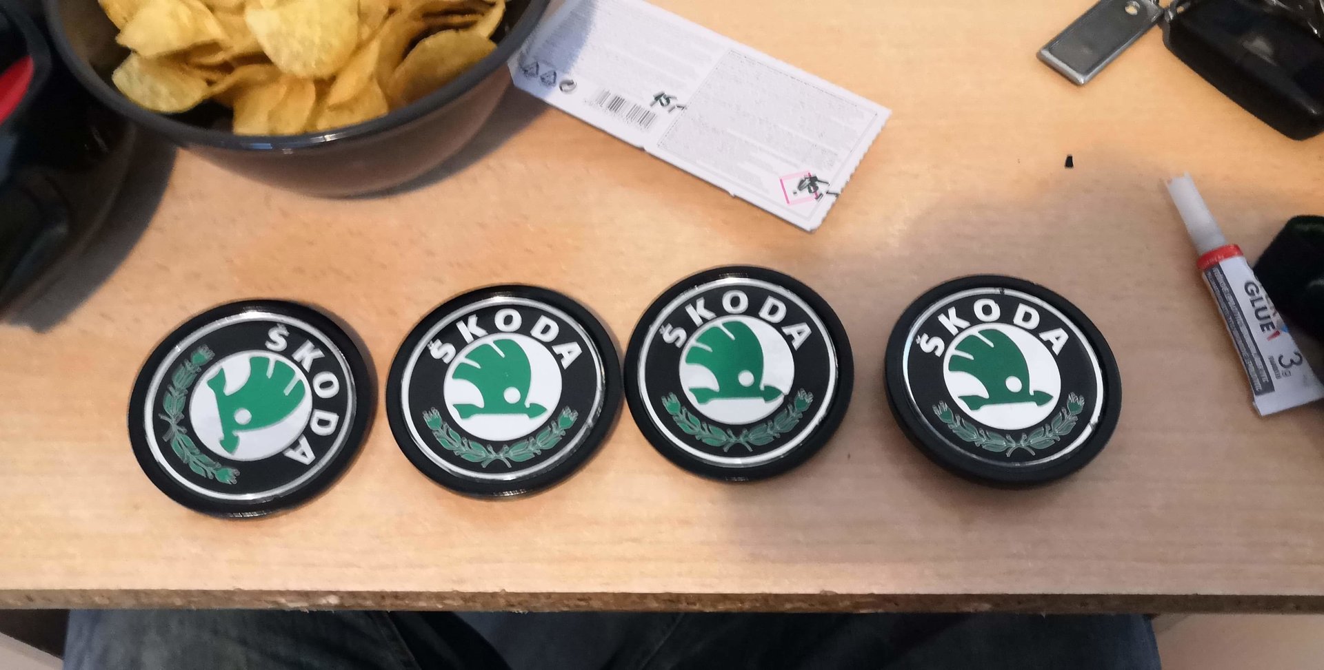 Koupil jsem novější loga škoda rozdelal a dal je do barvy kol a barvy auta takže...