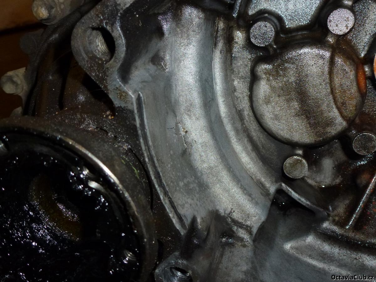 Jen kdyby někoho zajímalo, co způsobylo, že jsem musel vyměnit tu převodovku, tak za to může prasklina (vymáčknutí) u diferenciálu. Jak je známo, tak u 1.6/74kw se rády stříhají nýty na diferáku u převodovek DUU. Já jsem měl sice převodovku DLP, která by tímto trpět neměla (všude to na internetu píšou), ale vypadá to, že se asi jeden nýt taky střihl a při jízdě byl odmrštěn na obal převodovky, který se vyboulil a praskl. Převodovka jinak normálně fungovala, že je něco špatně jsem zjistil, až když začal téct ten olej... :(
