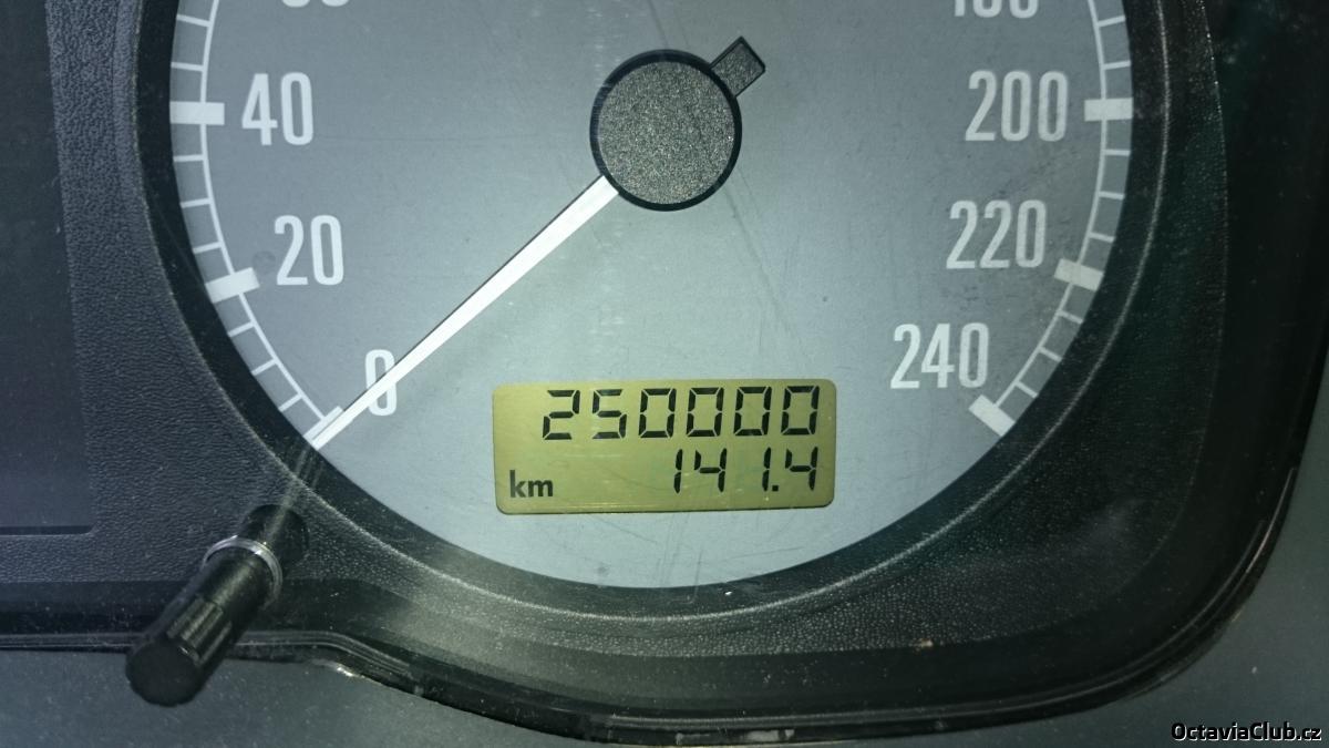 Tak jsem se včera dočkal a octě se ukázalo na tachometru čtvrtkulaté číslo, tedy krásných 250tis km :palec: . Doufám že i nadále budeme spolu fungovat jako do teď ;) . Taky jsem ji dopředu jako dárek už minulý týden nadělil roční dálniční známku, ať se holka taky projede legální, ale i nelegální rychlostí :D