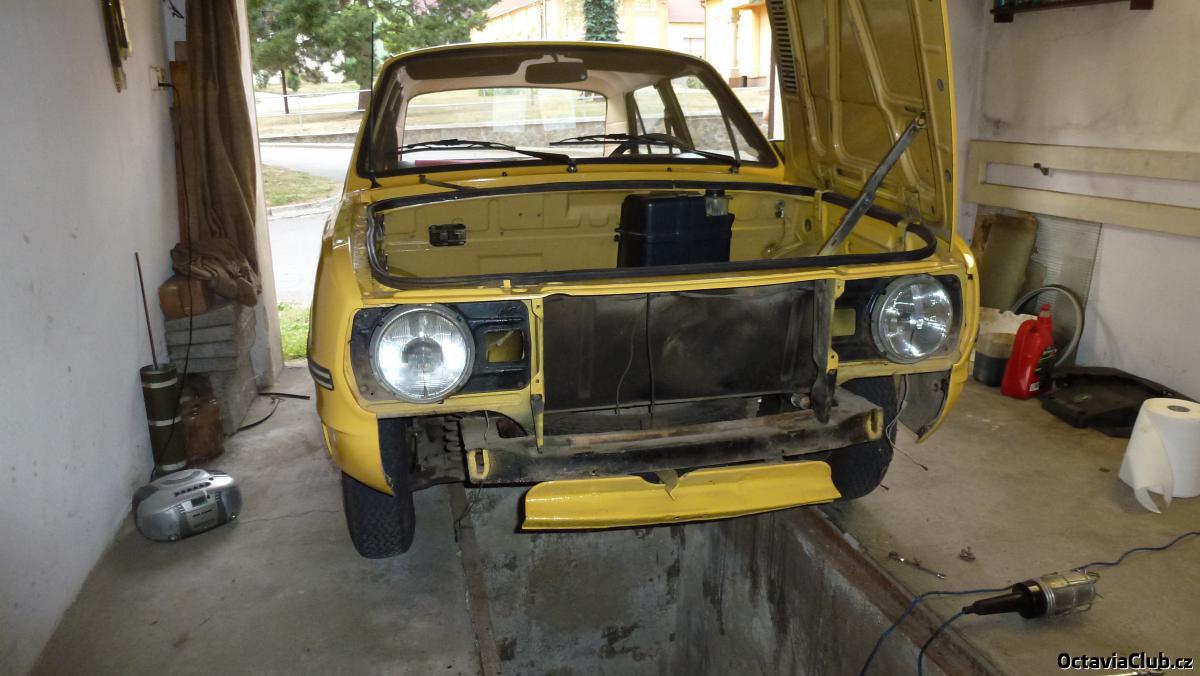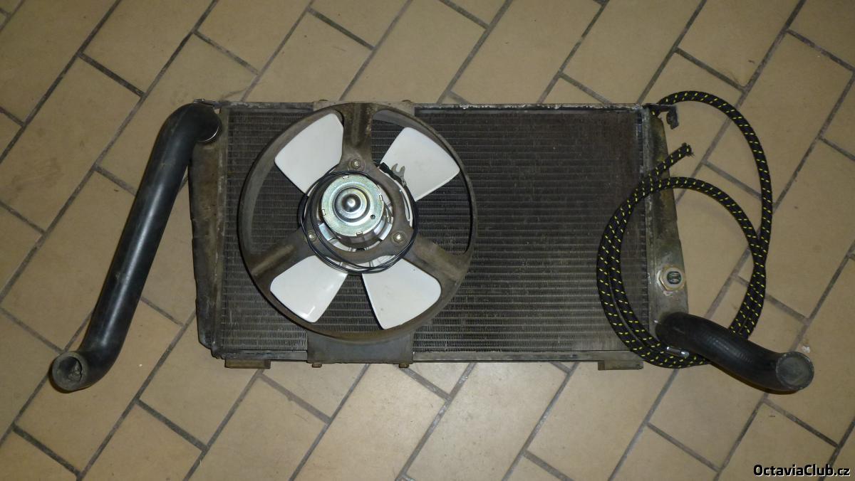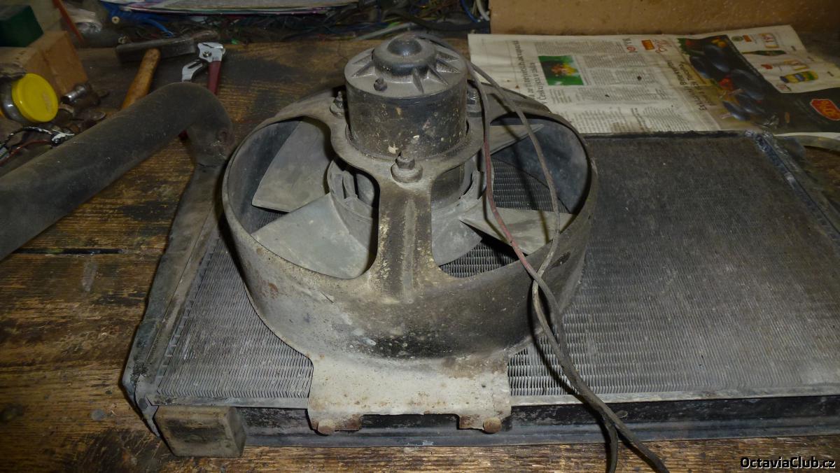 Běhěm července jsem se pustil do dalších věcí. Věděl jsem, že je KO větrák za chladičem, takže jsem vytáhl chladič z auta, dal nový větrák, nové termo čidlo co je na chladiči (tuším z felicie, které spíná při nižší teplotě než bylo u origo. čidla) a všechny nové hadice. Vše jsem namontoval do auta, do kabiny pod palubku jsem si pro jistotu přidal i vypínač na namuální spouštění ventilátoru chlazení a dal novou chladící kapalinu. Teď když je motor kompletně ohřátý a chvíli třeba stojím na místě, tak se spouští větrák chlazení tako tomu je třeba u octy, což je super :palec: . Když už jsem měl předek rozdělaný, tak jsem repasoval elektroinstalaci na předku auta, protože za 40 let už kabeláž nebyla v nejlepší formě (hlavně konektory na kabelech). Nalakoval jsem přední i zadní nárazník a do volantu jsem dal jiný střed, protože původní měl nápis Škoda jen vylisovaný v plastu a nyní je tam přímo kovová plaketka.