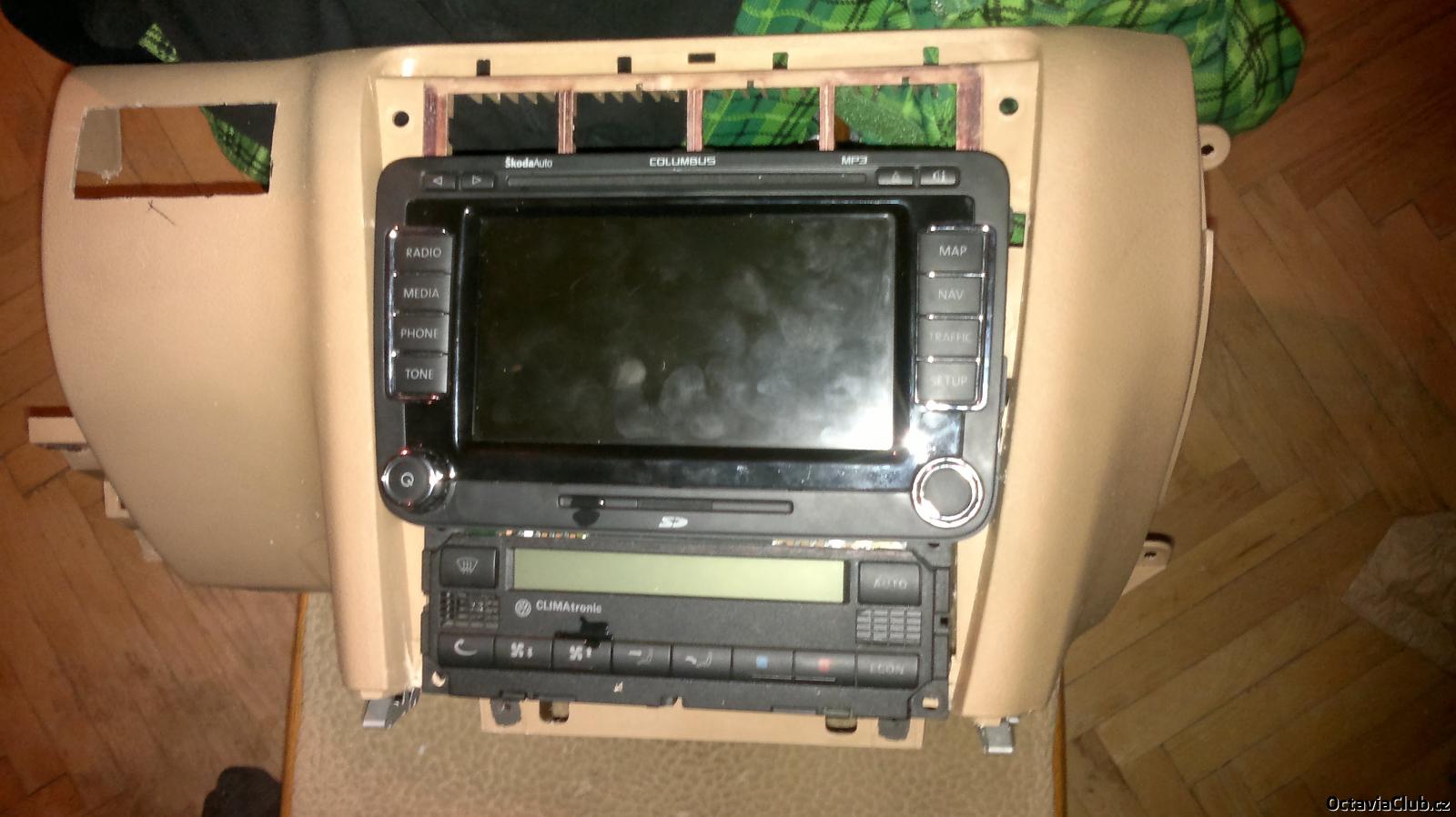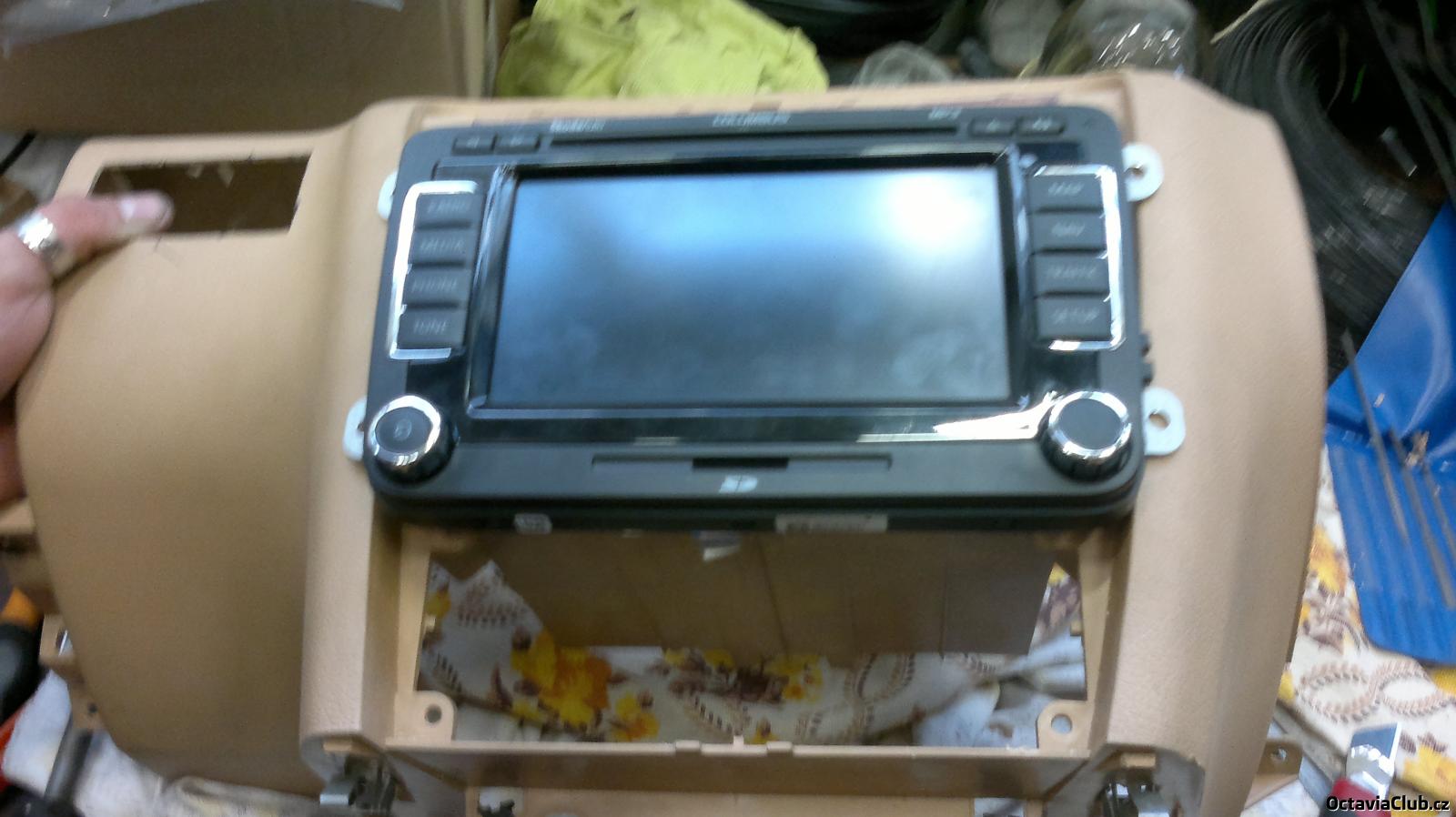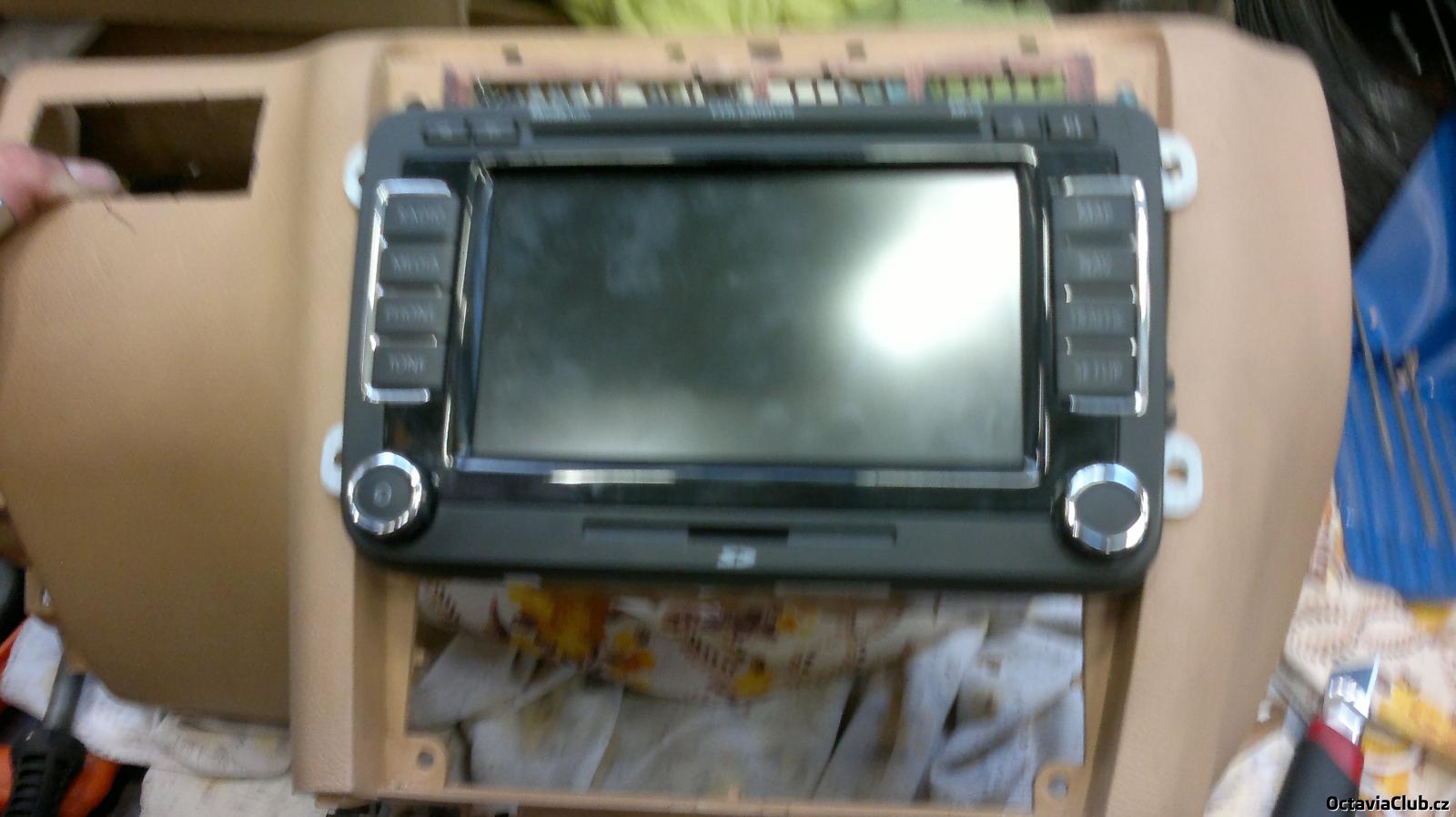 tak chlapy nevím jak to ten borec udelal na te fotce podle me to musí být fake ale navi dnes prisla.A bude to masakr tam dostat bo přední rámeček je dole o dost vetší tak zasahuje i do climatronicu kterej se bude muset nejspíš posunout o 0,5cm dolů. Zítra to nafotím něž začnu řezat a pilovat