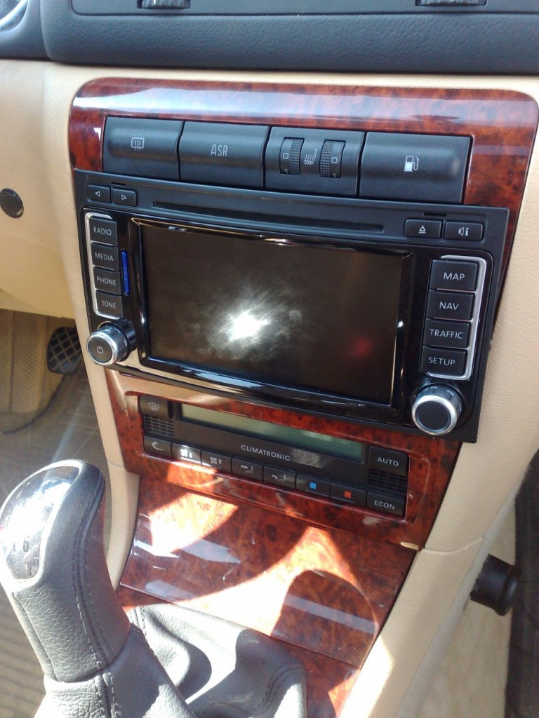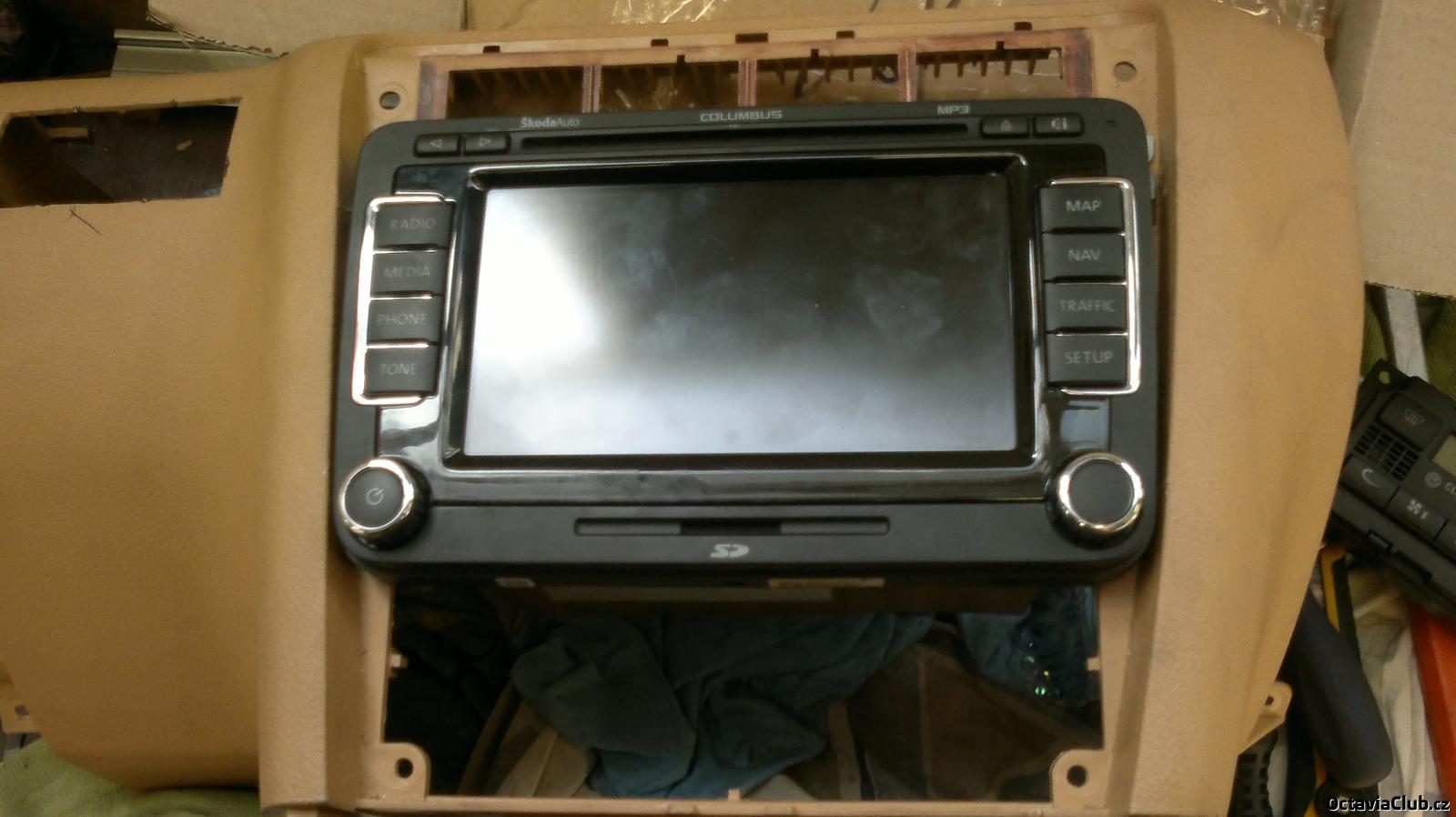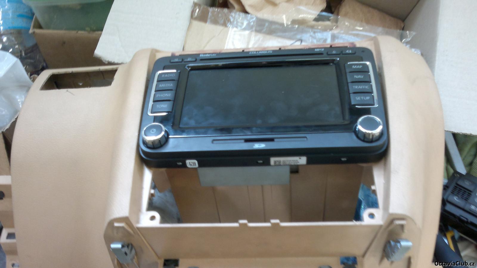 tak chlapy nevím jak to ten borec udelal na te fotce podle me to musí být fake ale navi dnes prisla.A bude to masakr tam dostat bo přední rámeček je dole o dost vetší tak zasahuje i do climatronicu kterej se bude muset nejspíš posunout o 0,5cm dolů. Zítra to nafotím něž začnu řezat a pilovat